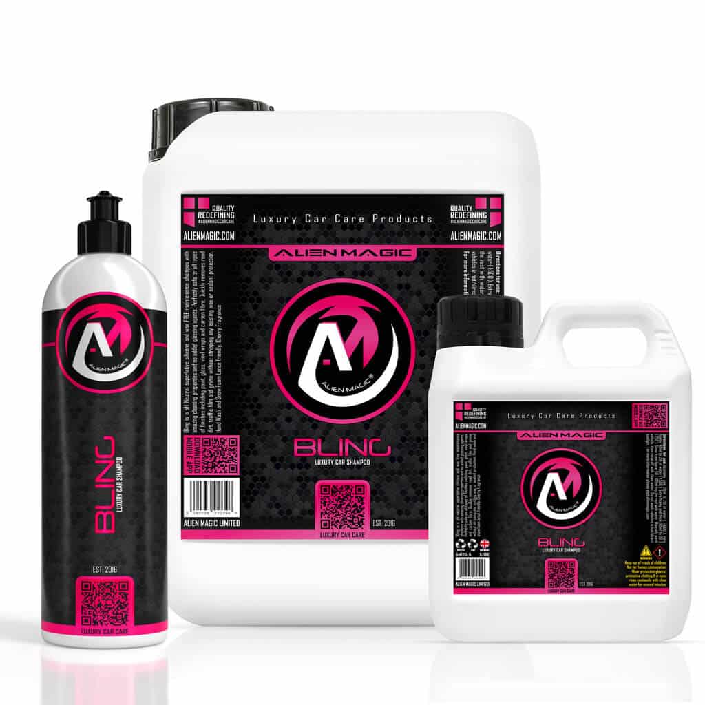 Bling is a superlative Silicone and Wax free car shampoo that targets dirt, grime and road spray assisted by the use of super polymers which contain and suspend them within an abundance of thick foaming bubbles. The highly concentrated formula quickly removes road dirt, grime and traffic film with ease and leaves surfaces clean, bright and streak free.