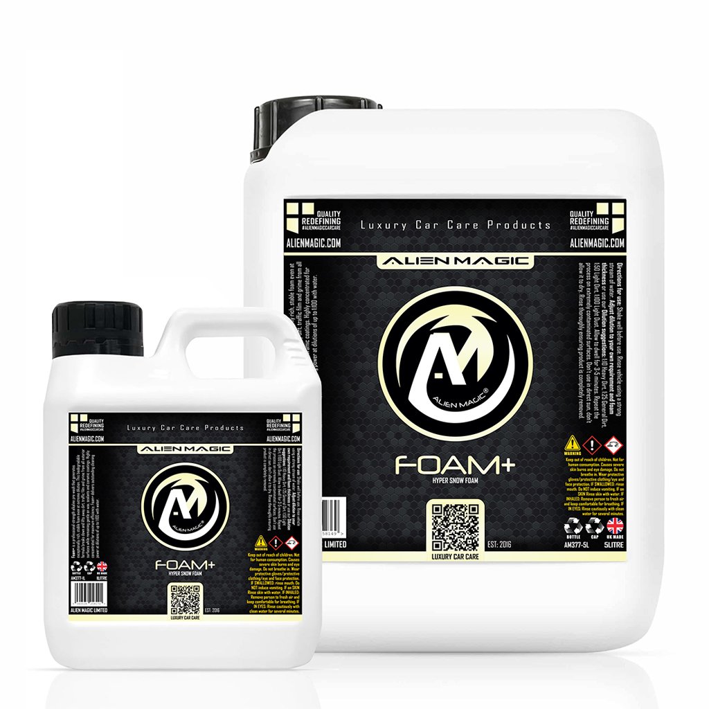 Foam+ is a professional-strength alkaline pre-wash that produces exceptionally rich, stable foam even at extreme dilution. Its biodegradable formula breaks down and lifts away dirt, traffic film and grime from all exterior surfaces while remaining gentle on wax, sealants and ceramic coatings. Highly concentrated for maximum efficiency, Foam+ delivers outstanding cleaning power and high foam at extreme dilution ratios.